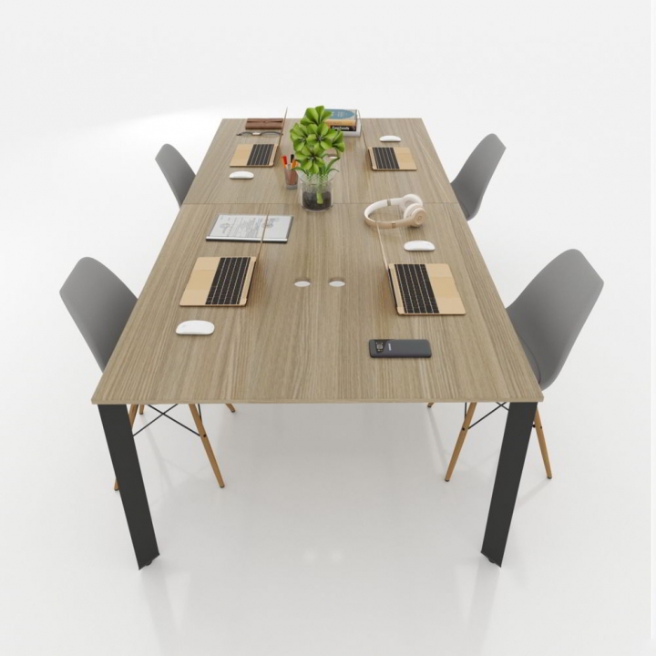 Bàn cụm văn phòng 2400x1200 gỗ MFC chân sắt tam giác lắp ráp ngàm - Mã sản phẩm BVP011
