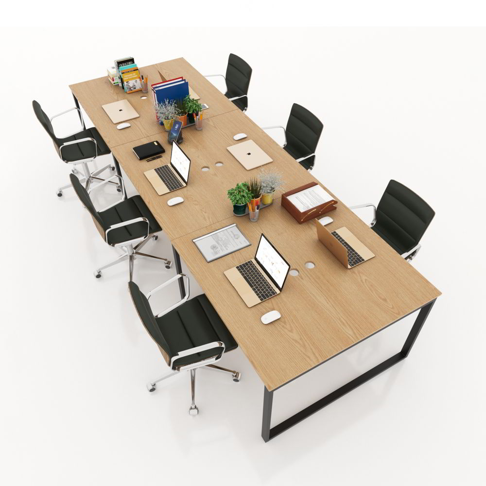 Bàn cụm văn phòng 3600x1200 gỗ MFC chân sắt 20x40 lắp ráp - Mã sản phẩm BVP006