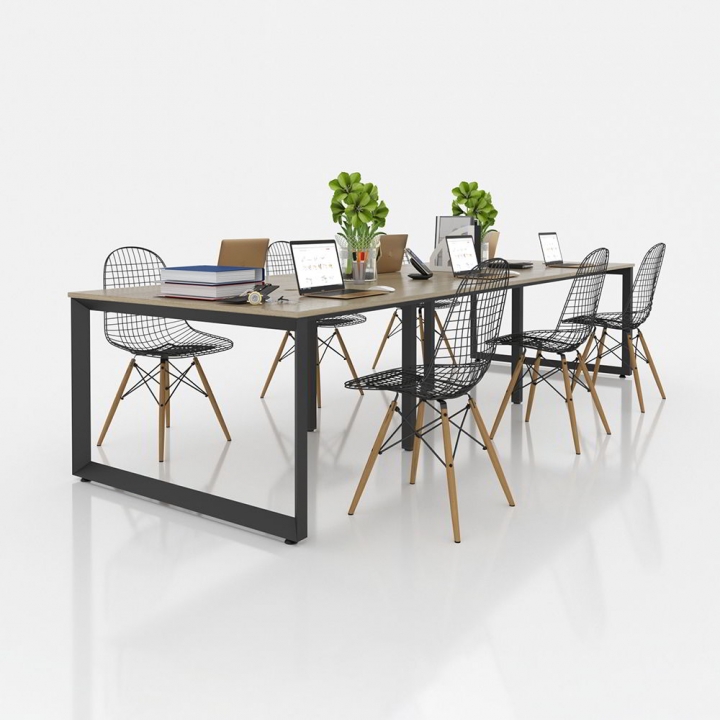 Bàn cụm văn phòng 3600x1200 gỗ MFC chân sắt tam giác quỳ lắp ráp ngàm - Mã sản phẩm BVP015