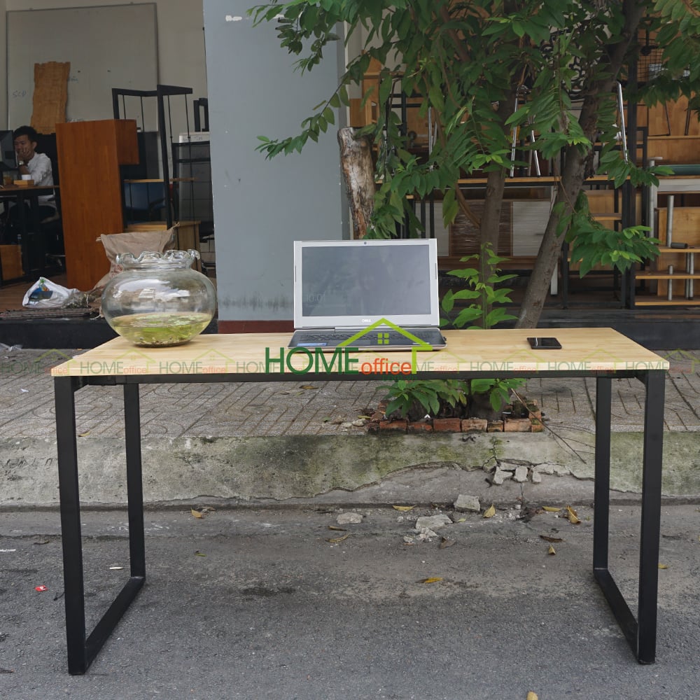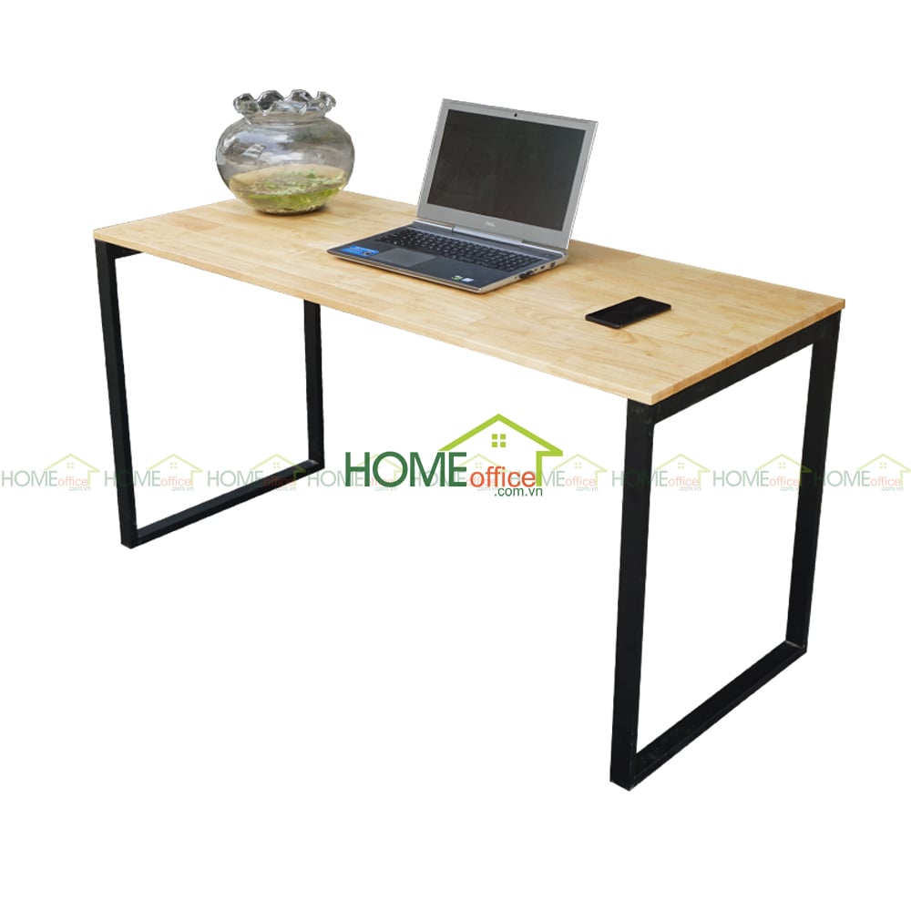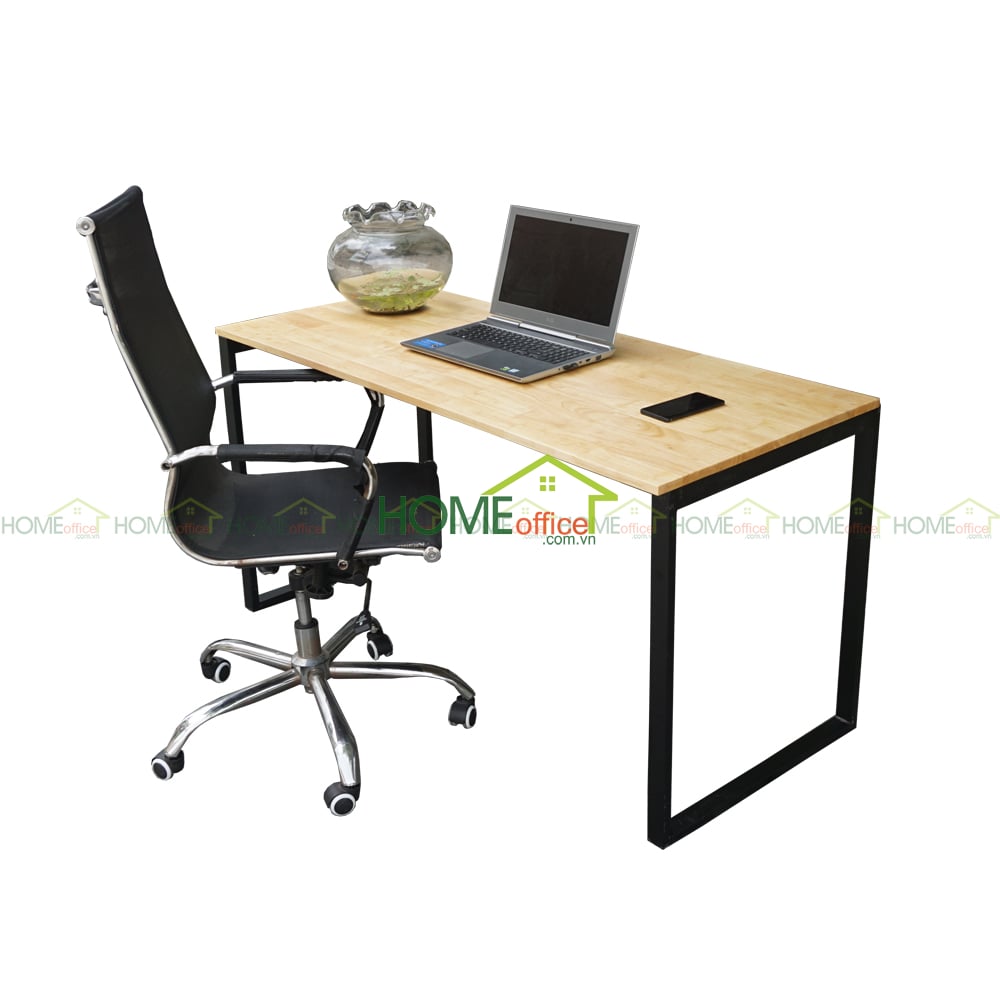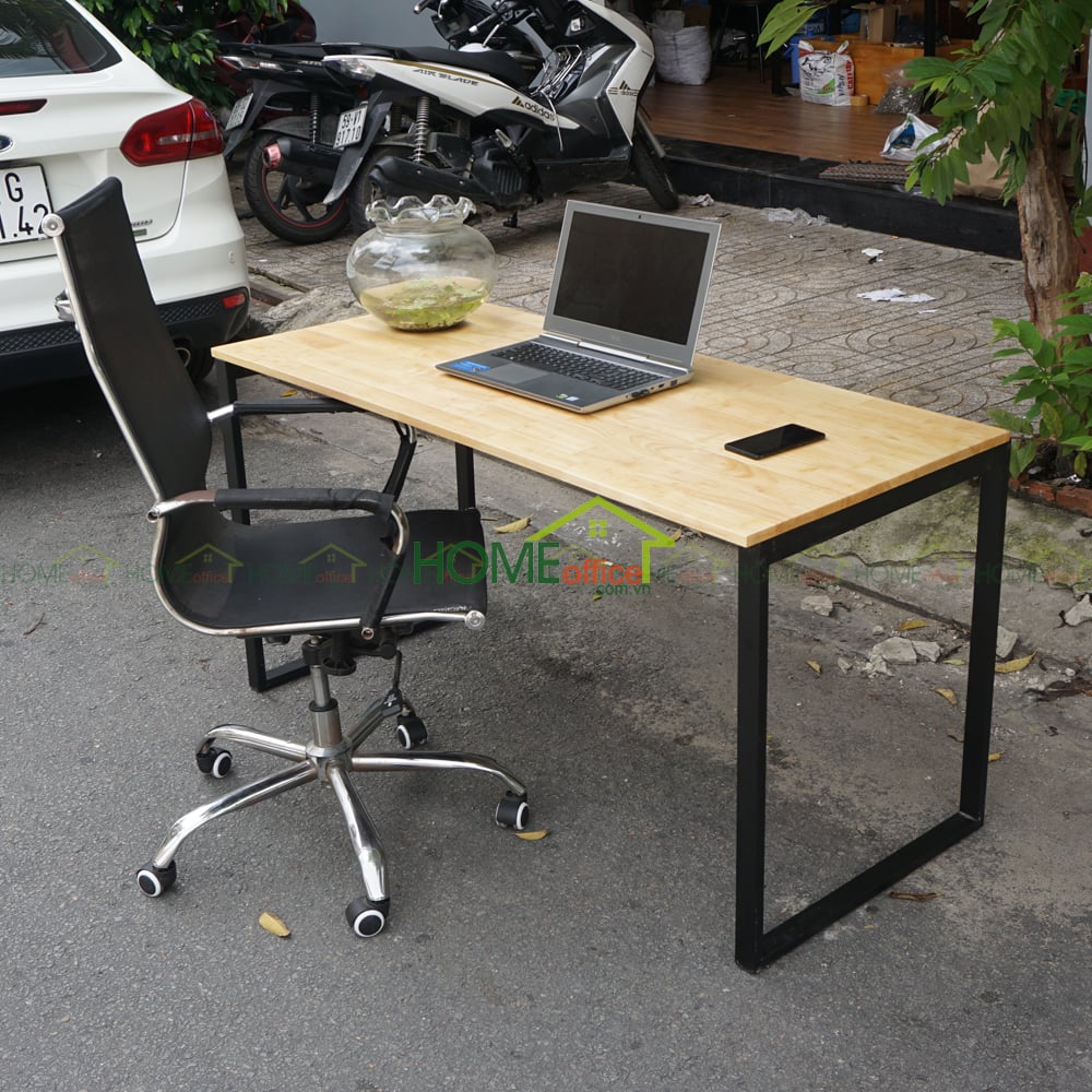 BNVCN78012 - Bộ sản phẩm bàn làm việc 1m4x70cm gỗ cao su chân sắt 20x40mm lắp ráp và ghế lưng lưới chân xoay